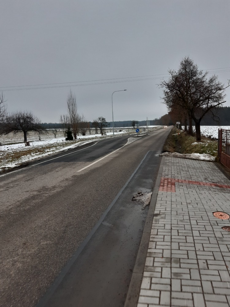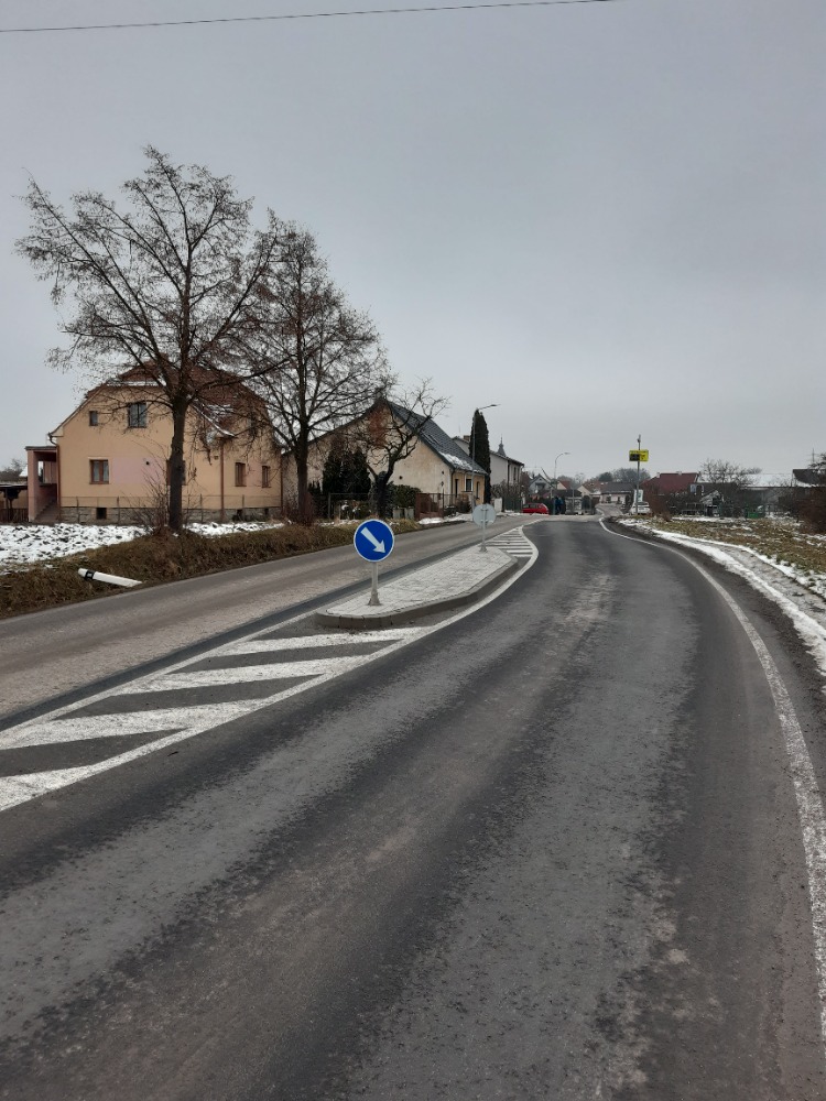 Rekonstrukce chodníků od Boubalů po Joklů a zbudování vjezdového zpomalovacího ostrůvku v rámci projektu dopravního zklidnění v obci